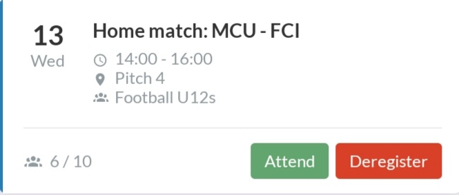Example: Register or unregister for the activity. The blue colour indicates match. 6 are registered, 10 is max number