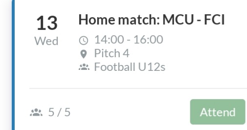 Example: Here both green and red member colours can sign up for the activity (this is how it looks in the calendar)