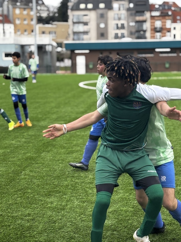 Dès l’entame, la NST Akademy impose un engagement total. Le jeu collectif est fluide, fait de combinaisons courtes, de dédoublements constants et d’actions tranchantes. La maîtrise du ballon est nette, la domination territoriale évidente. Seul bémol : un manque d’efficacité dans le dernier geste, entre dernières passes mal calibrées et finitions précipitées.